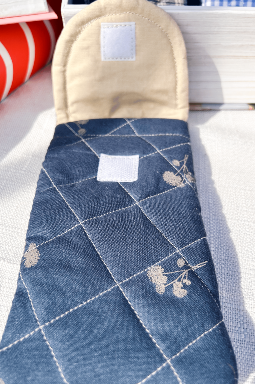 Handsewn from fabric blooming with delicate wildflowers details. The gentle padding protects your lenses from scratches and smudges, while the Velcro closure keeps your glasses snug and secure.